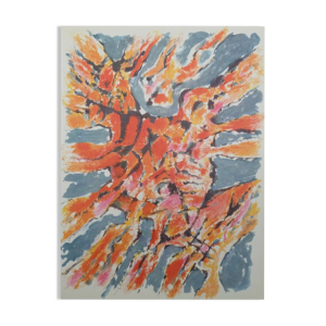 Lithographie en couleurs de Ladislas Kijno ,composition abstraite, signée