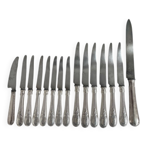 Lot de 12 grands couteaux et de 11 couteaux à dessert corne et acier