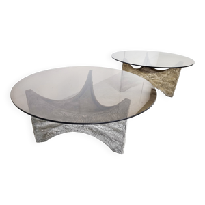 Lot de 2 tables basses d'appoint tripode forme triangulaire bords arondis