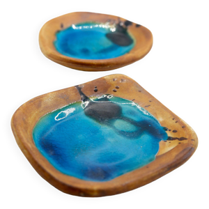Lot de 2 Vides poches en céramique des années 50, signés ACCOLAY