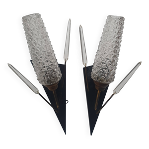 Lot de 4 anciennes tulipes en forme de cône en verre opaline striée pour ap