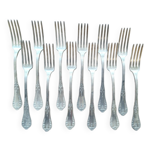 Lot de 6 Fourchettes de table rocaille MARLY vintage en métal argenté 21.5cm