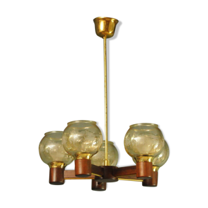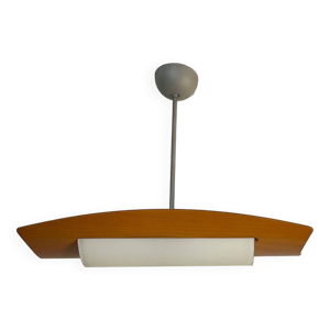 Lustre 512 en bois de teck et verre opalin par Uno & Östen Kristiansson pour Luxus Suède