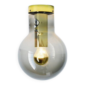 Description: Lustre à encastrer en forme de soleil avec feuilles de style espagnol du milieu du siècle Applique de plafond vintage en tole dorée, lampe florentine de style Hollywood Regency des années 1950