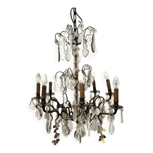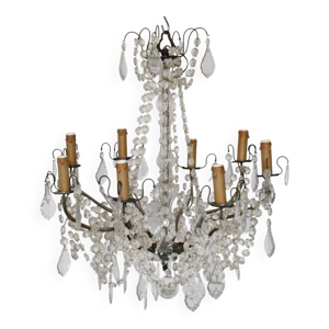 Lustre à pendeloques de cristal à sept lumières, de style Louis XVI
