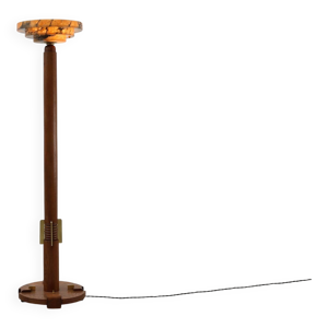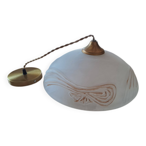 Lustre art déco albâtre et bronze, luminaire à 7 lumières