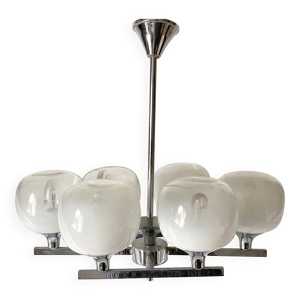 Lustre design en chrome et cristaux de Angelo Gaetano Sciolari. Vers 1970