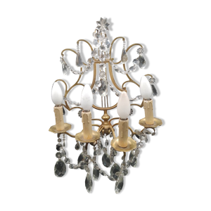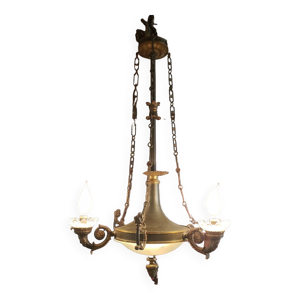 Lustre Empire 4 feux en bronze et tulipes en verre