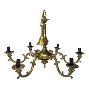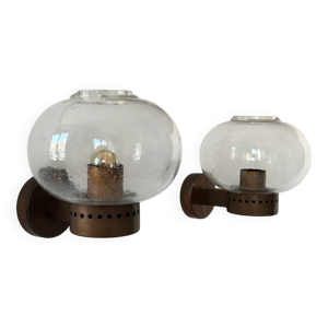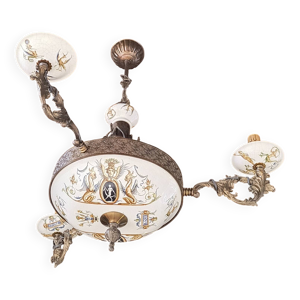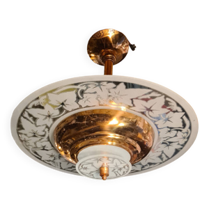 Lustre en cuivre et verre soufflé à la main par Ott International