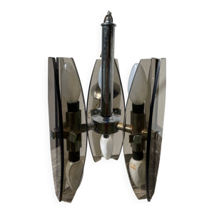 Lustre italien VECA FONTANA ARTE en verre fumé