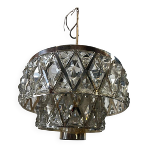 Lustre Kinkeldey en plaqué or et verre à facettes, années 1960
