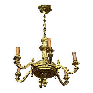 Lustre Louis XIV en bronze doré – 6 bras de lumière