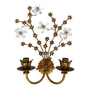 Magnifique Applique Italienne 2 Lumières Année 1960 Hoas de Palma Bronze Doré