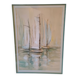 Marine , bateaux zampan au coucher du soleil, XX siècle