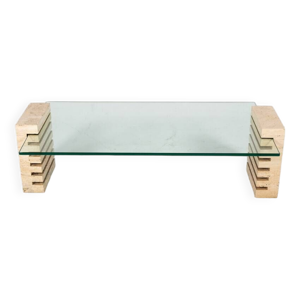 Mid-Century Modern Coffee Table, Glass and Brass