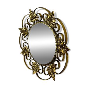Miroir doré de forme ovale 30 x 44 cm à décors fleuri vers 1930