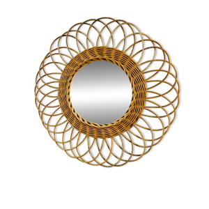 Miroir en rotin Malacca et porte-manteau, années 1960