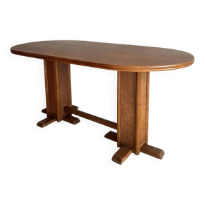 Miroir mid-century ovale en pin massif Suède 1960s 120x95cm