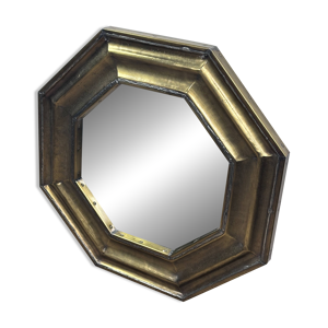 Miroir octogonal vintage laqué noir et doré années 70 80