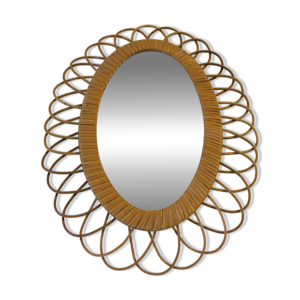 Miroir oval vintage, miroir à suspendre, miroir bois marqueté , miroir mural, décoration murale
