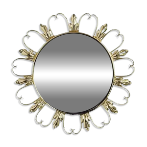 Miroir rond 1970 cadre métal inox brossé 43 cm