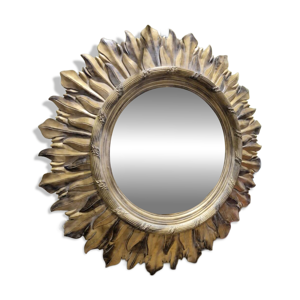 Miroir rond diamètre 90 cm monté sur panneau MDF, entourage teinté noir