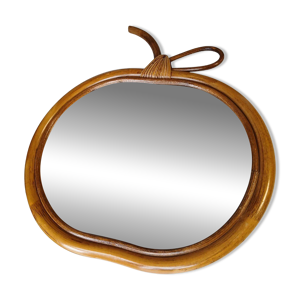 Miroir vintage 1960 pomme rotin osier bambou - 32 x 35 cm