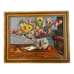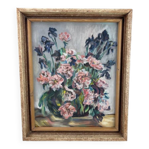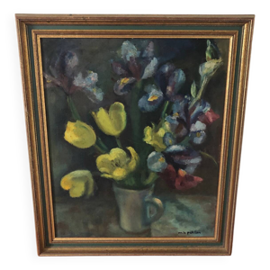 Nature morte aux iris huile sur toile milieu xxe siecle