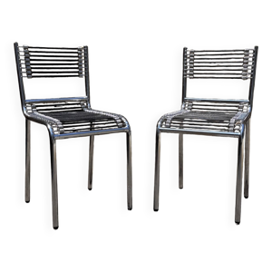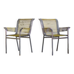 Pair of ''Sandows'' chairs designed by Rene Herbst, Bauhaus, France, 1980s