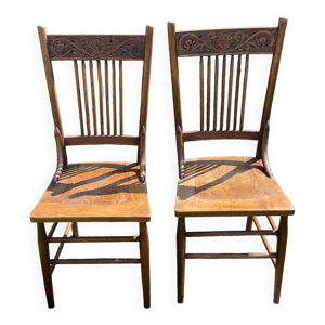 Paire de 2 chaises bistrot en bois courbé blanc et cannage Jacob Josef Kohn