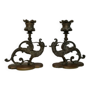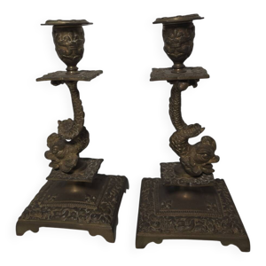 Paire de bougeoirs bronze