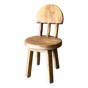 Paire de Chaise à trois pieds vintage française avec dossier style breton, siège en bois années 1960