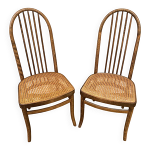 Paire de Chaise Ancienne Art Nouveau Bois Noyer + Assise Cannée Vintag