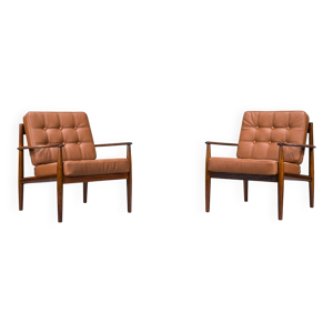 Paire De Fauteuils Et Son Ottoman, Modèle « joker » Grand Modèle En Cuir