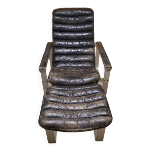Paire de fauteuils pulkka vintage et ottoman par Ilmari Lappalainen pour Asko Finlande