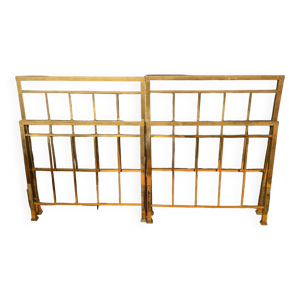 Paire de lits simples antiques assortis en fonte noire et dorée