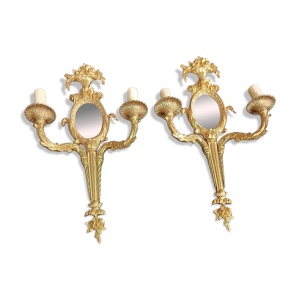 Paire de miroirs en laiton époque Art Déco perchés sur la tour Eiffel