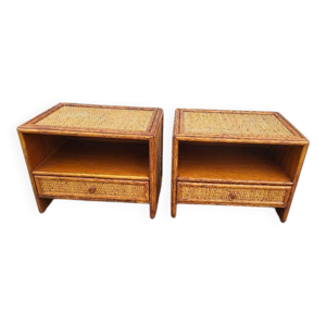 Paire de tables de nuit chevet bout de canapé vintage ancien 1950