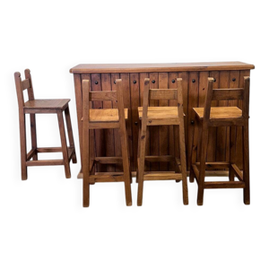 Paire de tabourets porte plante paille bout de canapé bois massif 1950 décoration meuble vintage
