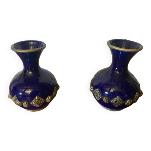Paire de vase ancien Sg Keramik anse céramique coulure verte & grise vintage