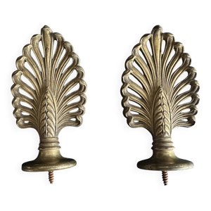 Paire d’embouts de tringle à rideau ancien flamme en bronze doré