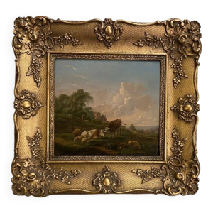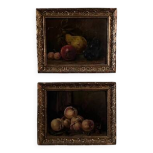 Paire d'huiles sur toiles japonisantes oiseaux au bord de la rivière signées jane