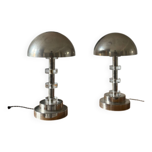 Paire lampes vintage 1940 de bureau jumo 210 chromée design - 50 cm