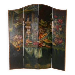 Paravent en papier peint à quatre panneaux de Zuber, années 1940
