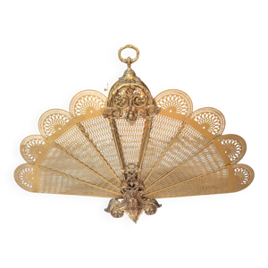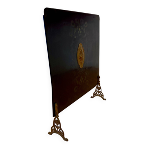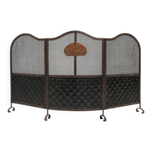 Pare feu de cheminée en laiton ancien 1920, pare étincelles vintage