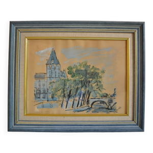 Paris Quai d'Orléans Eau forte Signée Jean Jules Dufour 1889 1973