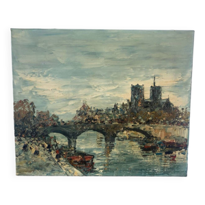 Paris Vue du Moulin Rouge, boulevard Clichy et Sacré-Coeur Huile sur toile signée