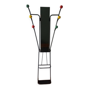 Patère boules et miroir vintage