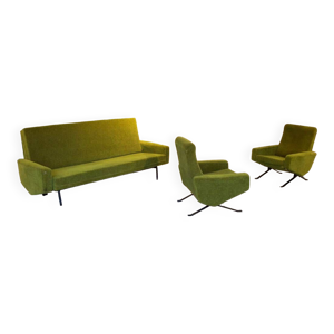 Paul Legeard set de 12 chaises en inox et laine bouclée 1970
