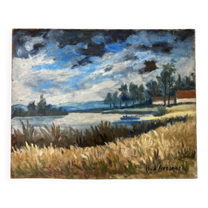 Paysage moulin au bord de l’eau, XXe signé